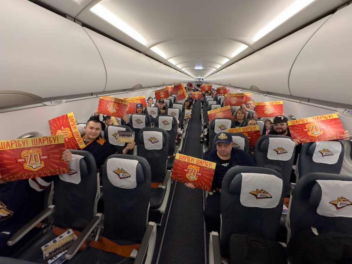 ✍️ Всем привет, впервые на связи на этом канале ХК «Металлург»! Недавно мы реализовали кейс, не имеющий аналогов в КХЛ. При планировании выездов команда решила переехать из Челябинска в Екатеринбург на автобусах. Расстояние между городами – чуть более 200 км. С учетом всех процедур в аэропорту, доехать по земле – быстрее. Тогда наш спортивный блок и отдел маркетинга приняли решение отдать зафрахтованный по маршруту «Санкт‑Петербург – Челябинск – Екатеринбург – Магнитогорск» самолет нашим болельщикам и отблагодарить тех, кто готов следовать за командой любыми способами и в любую точку. Акция получила название «Борт 70» – в честь 70-летия клуба, которое будет в декабре. Самолет оформили для болельщиков: трещотки, карточки с автографами, правила поведения на игре, стилизованные под инструкции безопасности в самолетах, и обращение от капитана команды перед взлетом. В общем, все на месте. Матчевую графику в соцсетях к игре против «Автомобилиста» мы также посвятили «Борту‑70». Как итог, б