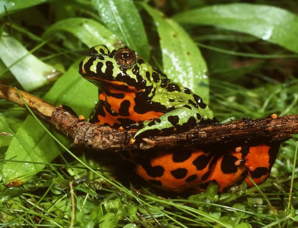 Небольшая яркая лягушка с красными пятнами на животе. Ее кожа покрыта ядовитой слизью. Прикосновение вызывает жжение, а у чувствительных людей симптомы вроде аллергии: резь в глазах, насморк, чихание. Живет от Урала до Дальнего Востока. Водяная землеройка
