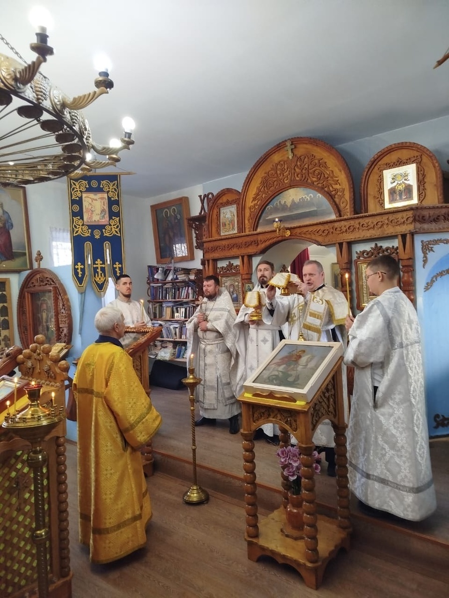 По окончании Литургии был совершен молебен Архистратигу Михаилу и прочим Небесным Силам бесплотным с крестным ходом вокруг храма.