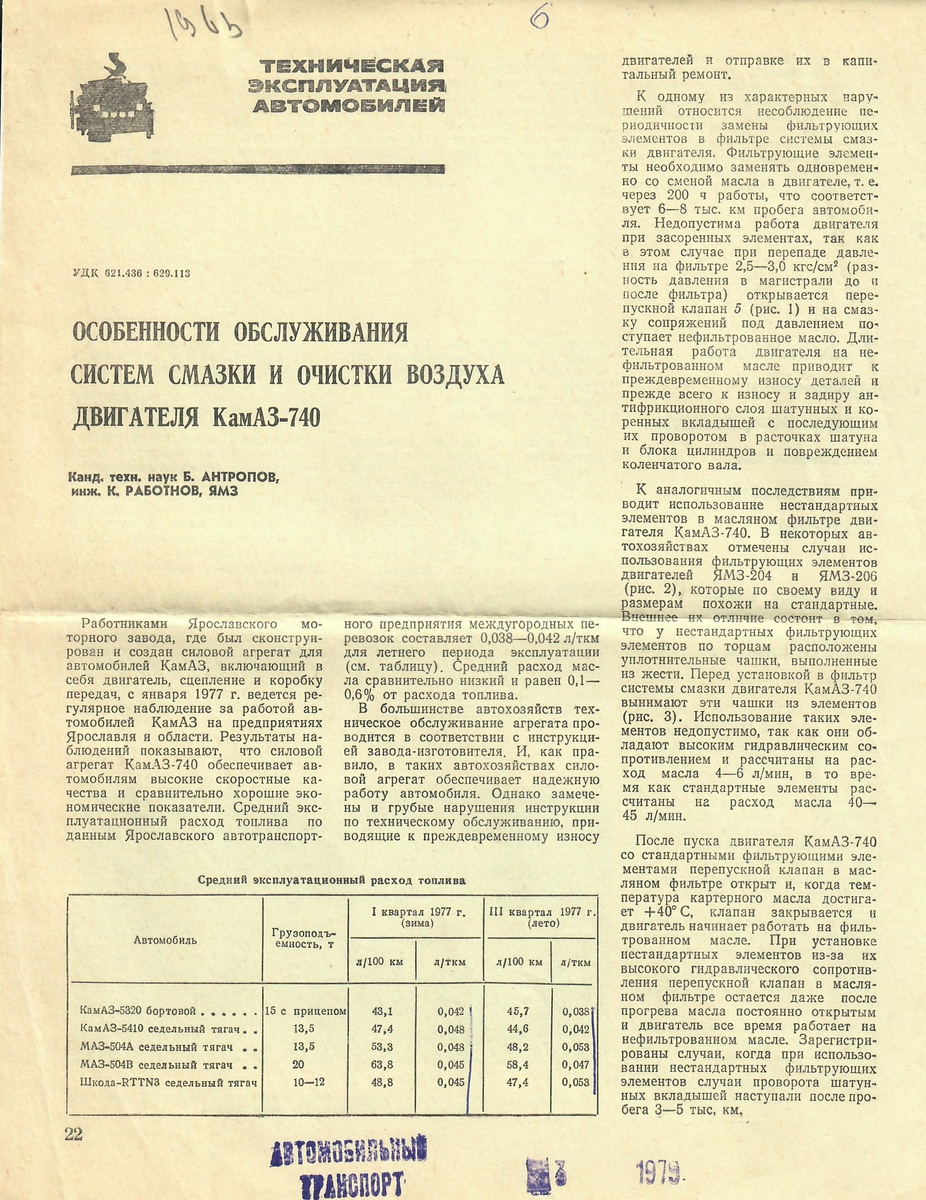 Читая старые газеты. Об обслуживании двигателей КАМАЗ-740.