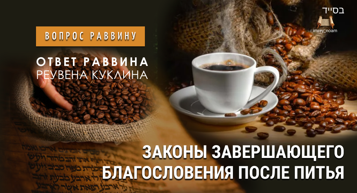 ✍️Вопрос раввину: Шалом, уважаемый рав Реувен. Если есть чашка нерастворимого кофе, где воды меньше, чем ревиит, но вместе с кофейной гущей больше чем ревиит, нужно ли говорить завершающее благословение? И дополнительный вопрос: если питьё занимает больше, чем 9 минут, какова алаха? ✍️Ответ pаввина Реувена Куклина Шалом! Чтобы ответы на ваши вопросы были понятны, позвольте сначала изложить вкратце основные законы завершающего благословения после питья. Если человек ест или пьёт, даже постепенно в течение длительного времени, он должен произнести благословение перед едой или питьём — даже если процесс занимает много часов. Чтобы быть обязанным произнести завершающее благословение после питья, нужно выпить ревиит (четверть лога, примерно 86-150 мл) в течение времени, за которое обычно выпивают такой объём. По обычаю, завершающее благословение произносят только если выпили ревиит именно в течение времени питья ревиит, а не в более длительный период. Горячий чай или кофе, который невозможн