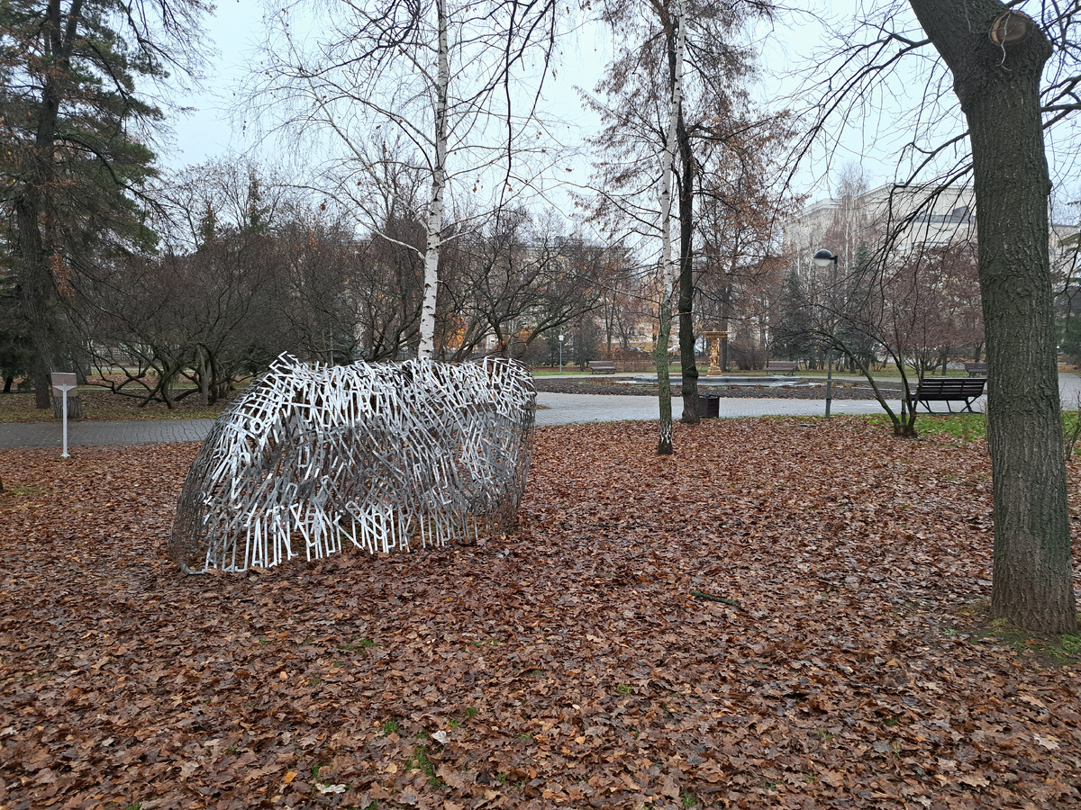 В Ленинском садике Казани, разместили новую инсталяцию. И если вживую она мне не очень приглянулась, то на фото, за счет оптического эффекта, выглядит очень даже ничего. Обьект называется "Стог" и посвящен казанскому художнику Евгению Голубцову.