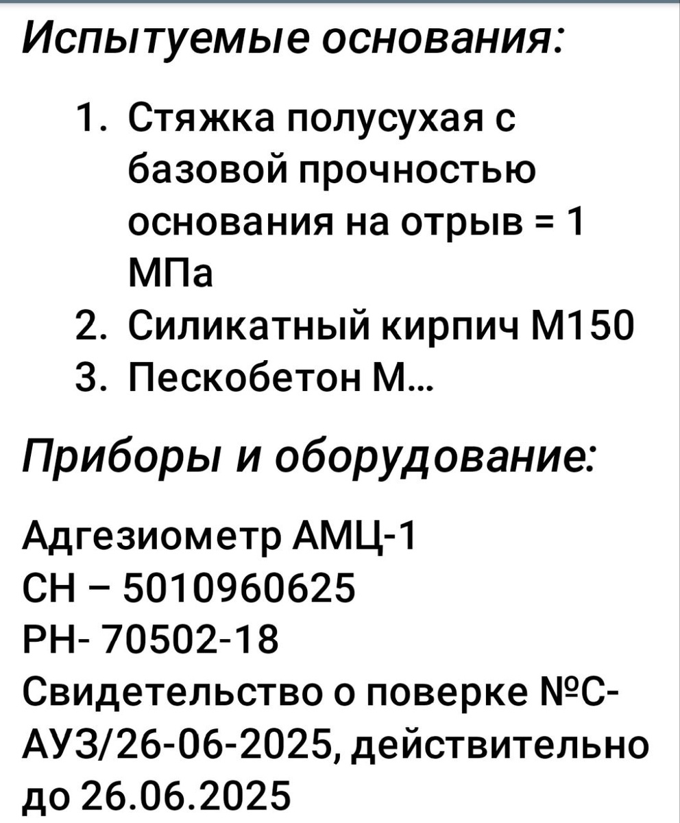 Была Адгезия к основанию 1 МПа, а после применения РВ стала 0,9 МПа