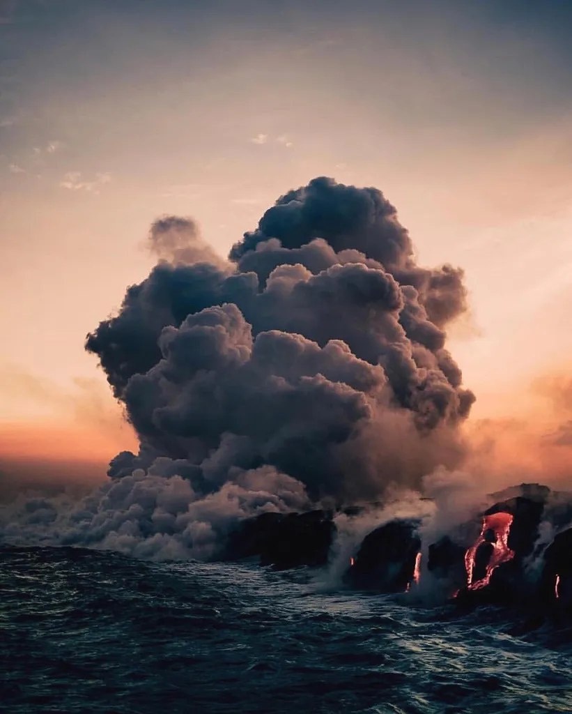 Когда расплавленная лава встречается с океаном 🫨😍