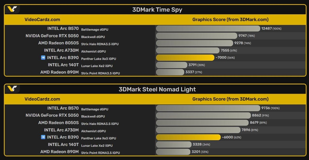 Топовая «встройка» чипов Panther Lake вдвое быстрее Radeon 890M в синтетике.