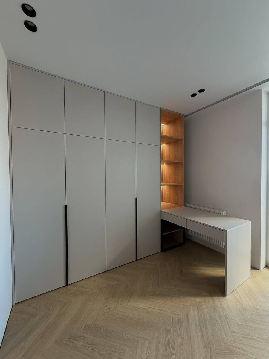 Спальня, где порядок вдохновляет! Представьте: вы заходите в комнату — и вас встречает идеальная гармония. Вдоль стены — элегантная система с плавными линиями, объединяющая зоны хранения и уютный рабочий уголок. • Светлые фасады с лаконичными ручками • Встроенный стол для работы или творчества • Умное наполнение: отделения для одежды, ящики для мелочей, ниши для книг Всё на своих местах — ничего лишнего. 💬 Хотите такую же спальню? Напишите нам: wa.me/+79955009461