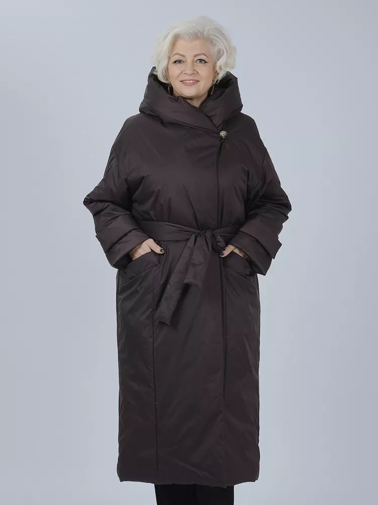 Пальто в насыщенном шоколадном оттенке легко вписывается в зимний гардероб и создаёт мягкий, уютный образ