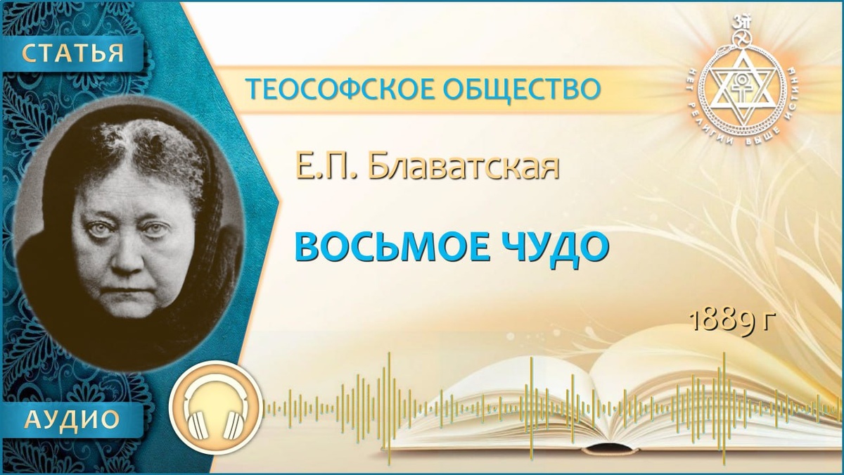🔥 Дорогие друзья, мы продолжаем публикацию статей Е.П. Блаватской в формате аудио! ✔️https://vk.com/audio-224812589_456239049_787783ae52c0ef85a0 📖 Статья "Восьмое чудо" впервые вышла в журнале "Люцифер" в октябре 1891 года. 🎧 Приглашаем вас слушать, делиться с друзьями и оставлять комментарии! ✅Статью можно прочесть на сайте "Теопедия": clck.ru/3GJNgW ✅В оригинале она опубликована здесь: https://en.teopedia.org/lib/Blavatsky_H.P._-_The_Eighth_Wonder