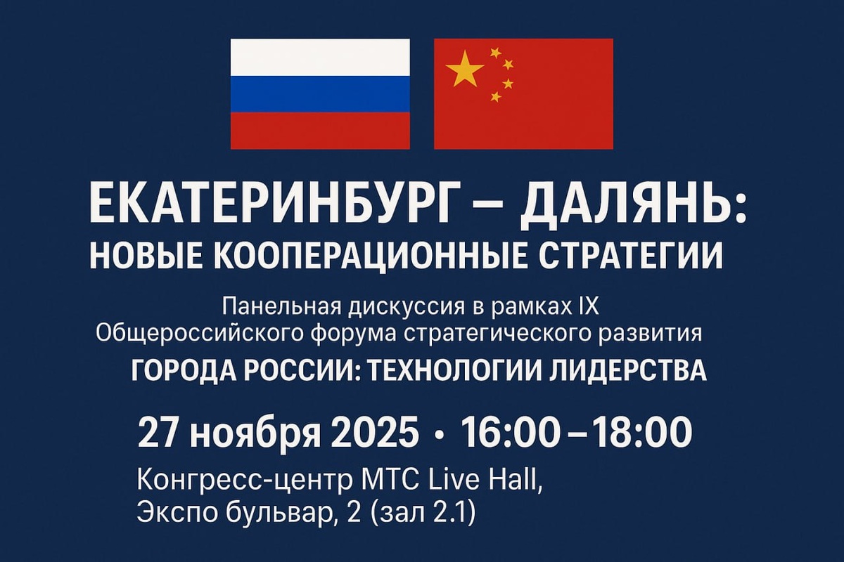«Екатеринбург – Далянь: новые кооперационные стратегии»! Приглашаем всех заинтересованных принять участие в панельной дискуссии в рамках IX Общероссийского форума стратегического развития «Города России: технологии лидерства» — главной федеральной площадки по развитию городов, управленческим и технологическим решениям будущего. Основная цель дискуссии — представить новые возможности для бизнеса, технологического обмена и инвестиционного сотрудничества между Екатеринбургом и Далянем. 📅 27 ноября 2025 года 🕓 16:00 – 18:00 📍 Конгресс-центр МТС Live Hall, Экспо бульвар, 2 (зал 2.1) 📌 Кто участвует Со стороны Екатеринбурга: • Андрей Беседин — президент УТПП, модератор • Алексей Орлов — Глава Екатеринбурга • Владимир Пелихов — АО «ПО “Уральский оптико-механический завод”» • Ольга Каштанова — ПАО «Уральский завод РТИ» • Илья Обабков — и.о. ректора УрФУ Официальная делегация города Даляня: • Лэн Сюэфэн — член Постоянного комитета КПК Даляня • Цзян Чуньмэй — вице-президент Ассоциации