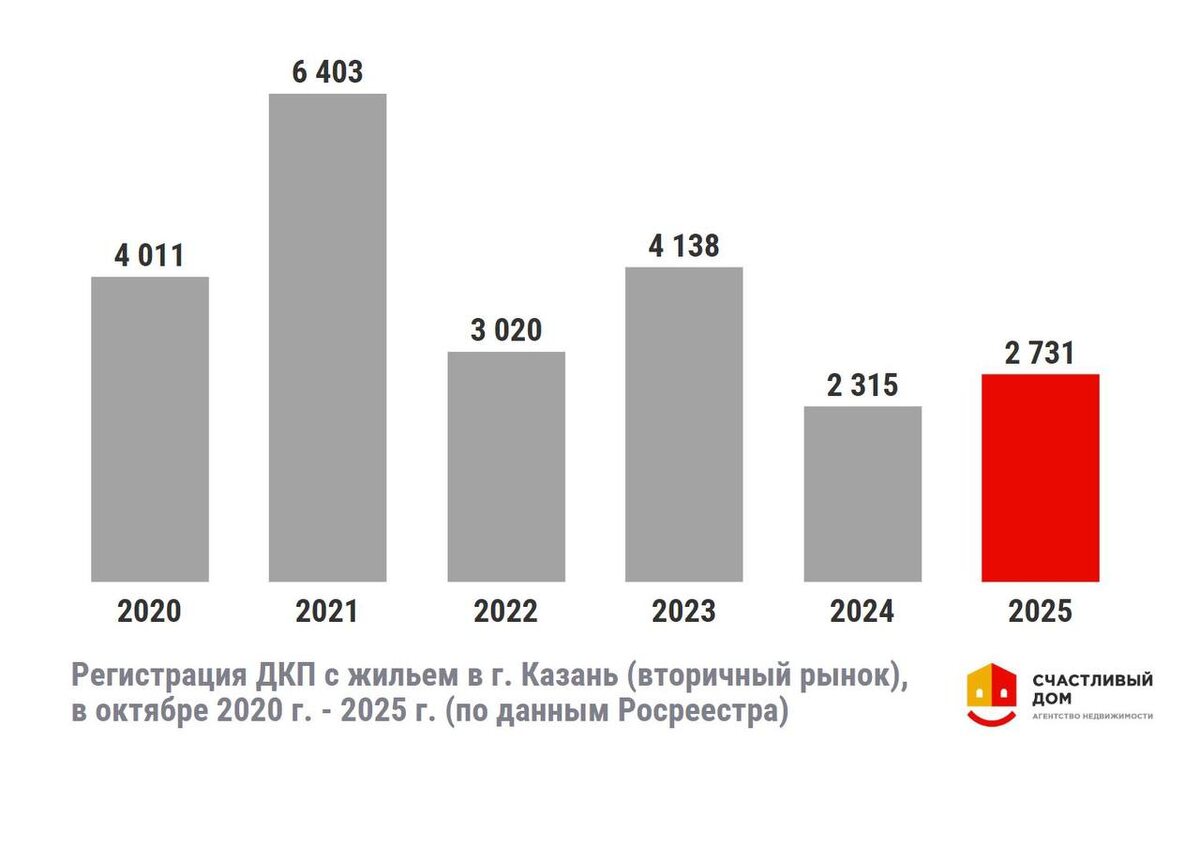 Какой был октябрь на вторичном рынке? Для чистоты эксперимента давайте сравним все октябри за последние 5 лет (мы за вас уже все сделали, и удобно свели данные в графику) Не провальный, как октябрь 2024 года, но и не крепкий середняк; Ноябрь и декабрь покажет увеличение количества числа сделок, поэтому если вы давно не могли продать своё вторичное жильё- самое время воспользоваться ситуацией;