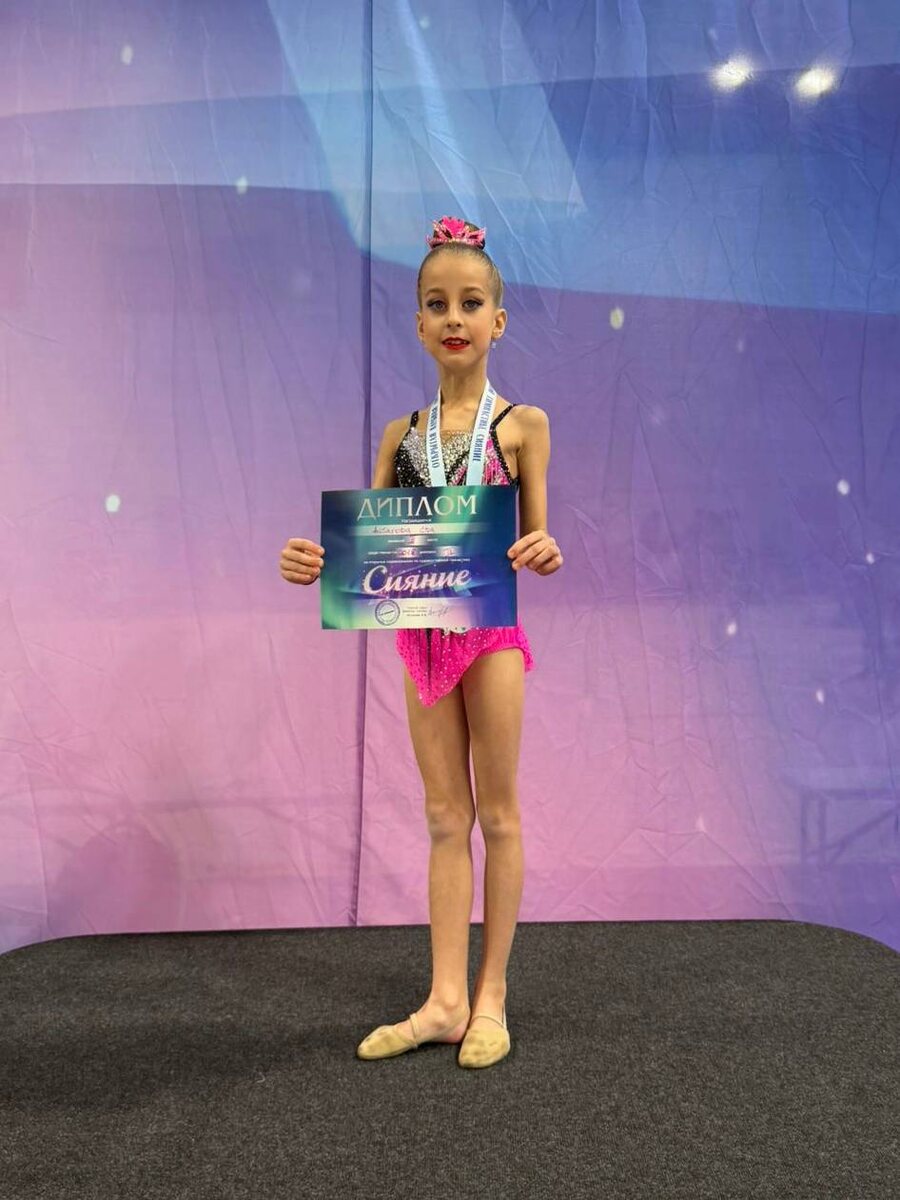 👏Поздравляем Еву, ученицу 1 «Б» класса, со вторым местом по художественной гимнастике на открытых соревнованиях «Сияние».