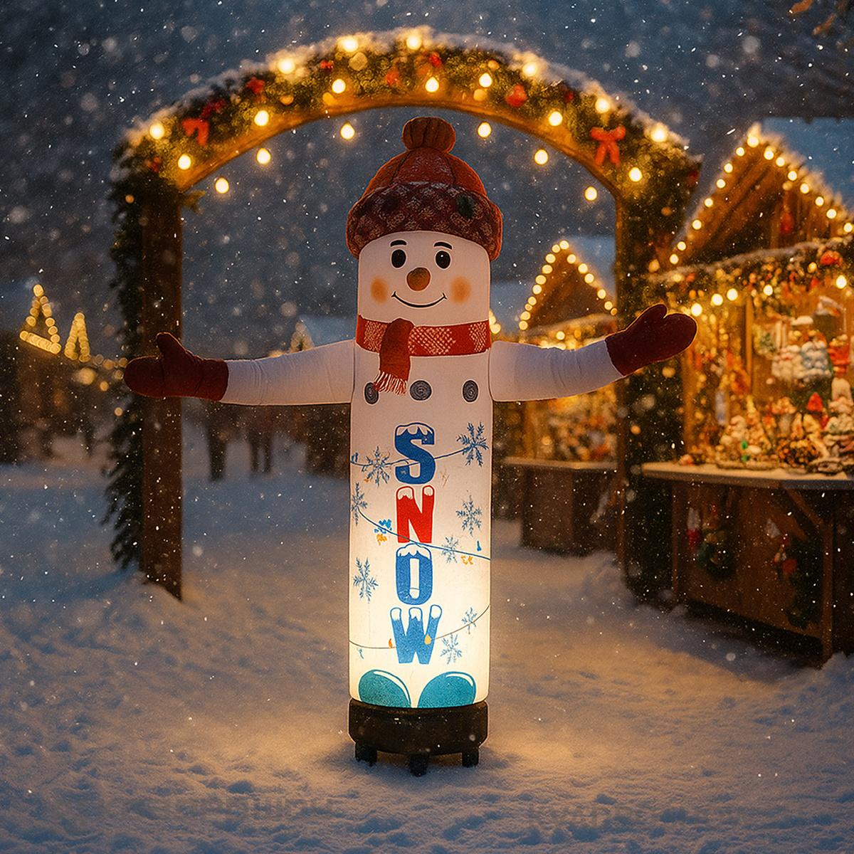 Когда наступает лето, владельцы магазинов, автосервисов и шиномонтажей дружно выставляют рукомахов перед входом. Эти яркие и бесконечно энергичные рекламные фигуры машут рукой, привлекая покупателей куда эффективнее любого баннера. Но вот приходит зима — суровая, снежная, иногда даже с характером. Что же происходит с рукомахами? Спойлер: ничего! По крайней мере, если это наши рукомахи Наши фигуры созданы именно для круглогодичной работы — от жары +50 °C до ледяных –40 °C. То есть они спокойно переживают и июльскую духоту, и крещенские морозы, продолжая уверенно выполнять свою миссию — звать клиентов внутрь Секрет выносливости — материалы и технологии производства Наш рукомах — это не просто кусок ткани, “как-нибудь” пришитый к нагнетателю. Это технически продуманный продукт, выполненный швейным способом из профессиональной воздухонепроницаемой ткани PU2 R/S (5×5) 1.50 плотностью от 230 г/м². Материал обладает: ✔ устойчивостью к УФ-излучению, ✔ полиуретановым (ПУ) защитным покрытием, ✔