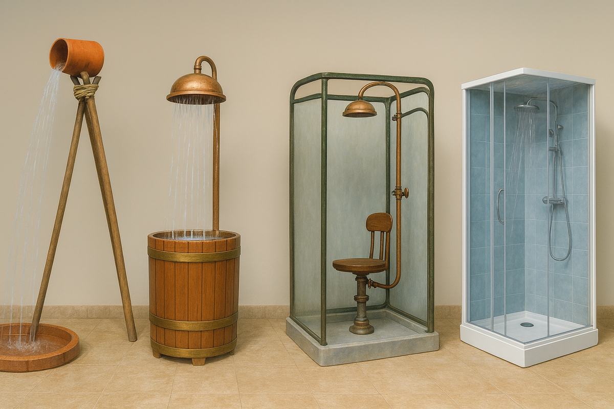 Идея душа восходит к древности: в Египте и Месопотамии высокопоставленных особ обливали водой, а древние греки первыми начали строить стационарные душевые: их акведуки подавали воду в большие общественные душевые комнаты. Однако первые закрытые душевые кабины появились в XIX веке. Уже в 1810 году в Англии, в эпоху Регенства, был создан громоздкий прототип душевой кабины с резервуаром для воды вверху и большой ванной внизу (воды шла по трубам и рециркулировала). В 1839 году польско-канадский инженер А. Э. Кержковский изобрёл душевую кабину в современном понимании. К середине XIX века производились более совершенные модели – например, «Virginia Woolf» (1800-х гг.), имевшая вращающийся стульчик и подачу воды напрямую из водопровода. К концу XIX века кабины обрели привычную форму, а несколько компаний начали их массовое производство, сделав душ более доступным и комфортным. В XX веке закрытые душевые кабины получили широкое распространение в быту (особенно с 1970-х) наряду с развитием городской инфраструктуры и технологий.