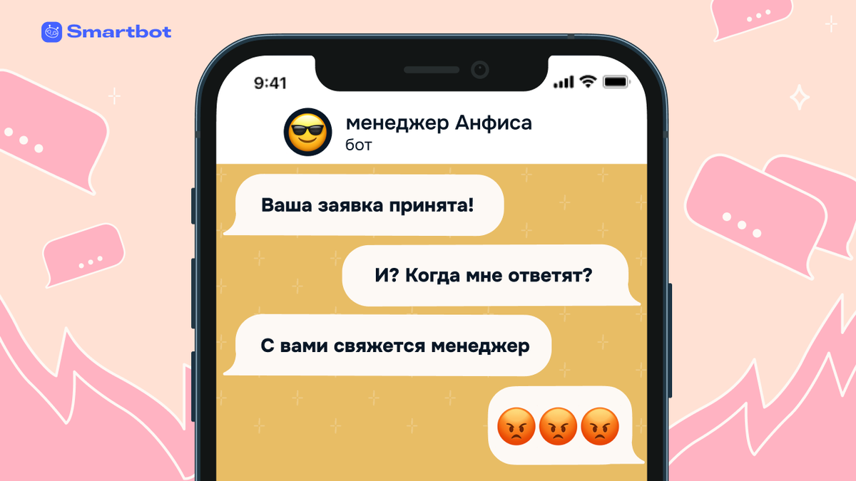 Пока клиентов немного, операторы справляются с потоком сообщений и поддерживают качество сервиса. Но когда бизнес начинает расти, без автоматизации продаж конкурировать невозможно. Чтобы избежать негативной реакции пользователей, нужно правильно настроить чат-бота.
