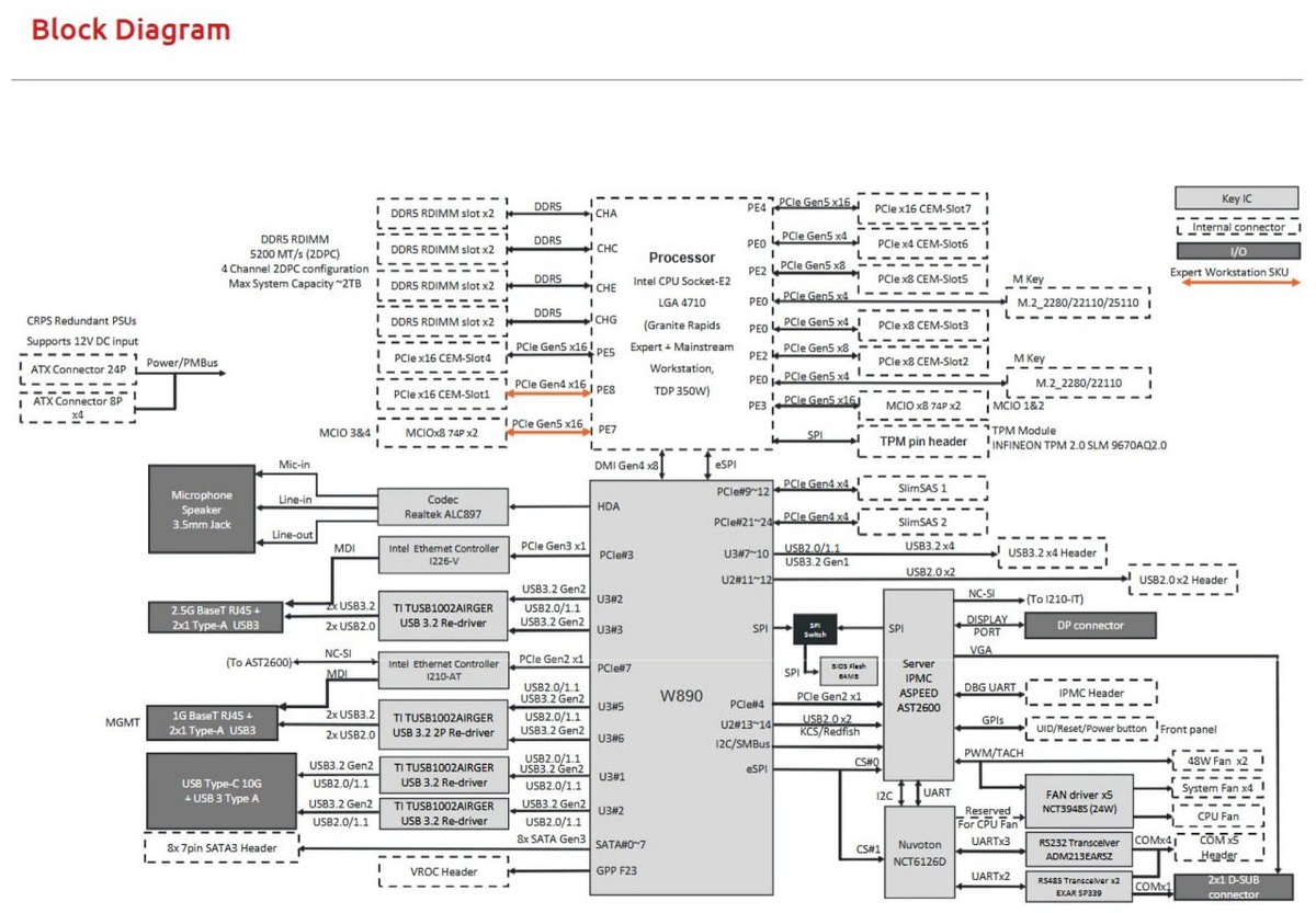 В сеть просочилась схема чипсета Intel W890, который готовят под рабочие станции на базе Xeon 6 «Granite Rapids-WS