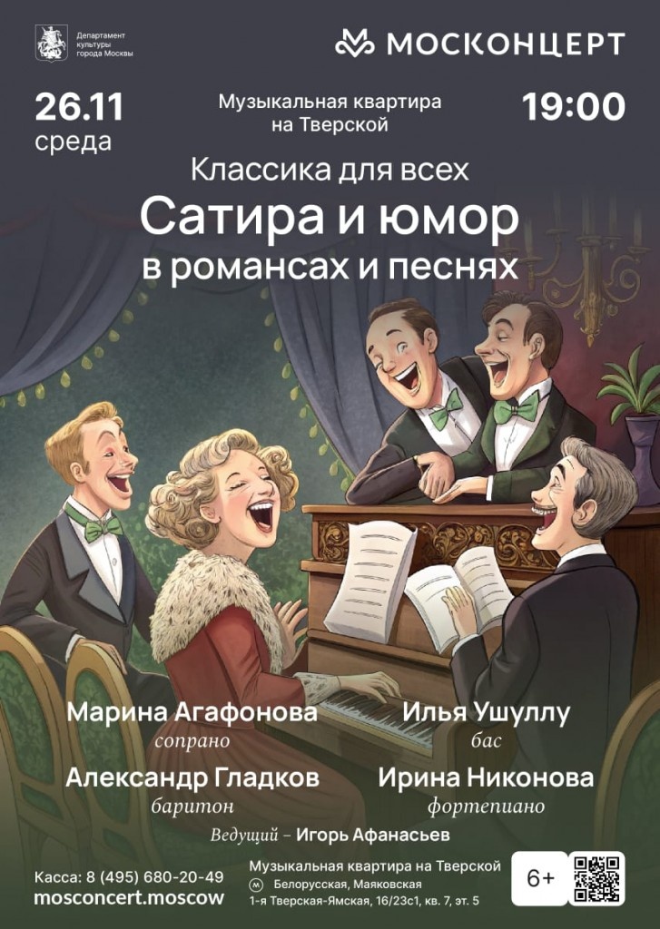 АФИША! 26 НОЯБРЯ, 19.00, МУЗЫКАЛЬНАЯ КВАРТИРА НА ТВЕРСКОЙ, "Сатира и юмор в романсах и песнях"!