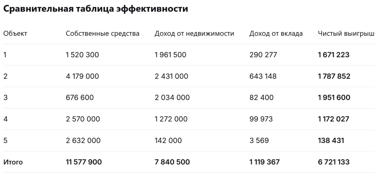Всем привет! Видео с итогами за год, где мы рассказали, что купили 5 квартир и о наших планах далее, уже вышло: Теперь расскажу, как считалось сравнение моим мужем. Статья для тех, кому интересны цифры. Основная цель была понять насколько прибыльно оказалось вложение в квартиры по сравнению с тем, как если бы мы вложили аналогичную сумму на депозиты. Для простоты расчёта будем считать что депозит на каждый месяц соответствует ключевой ставке в стране. Для расчета процентов по депозитам используются следующие исходные данные для ключевой ставки: с 28.10.2024: 21.00% с 09.06.2025: 20.00% с 28.07.2025: 18.00% с 15.09.2025: 17.00% с 27.10.2025: 16.50% Метод расчета: Сложный процент с ежемесячной капитализацией. Для неполных месяцев используется пропорциональный расчет. Дата подведения итогов: 01.11.2025 Объект #1 (покупка 12.12.2024 ЖК Кузьминский лес) Собственные вложения: 1 520 300 руб. (первоначальный взнос 1 197 800 р. + ремонт 280 000 р. + страхование 30 000 р. + бронь 10 000 р. +