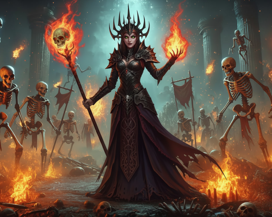 Основа билда как и у любого призывателя - армия миньонов. Скелеты-снайперы выбраны не случайно. Они появляются со старта игры, позволяют пролететь все акты, а после актов легче любых других миньонов масштабируются для ендгейма. Ваша задача поддерживать миньонов с помощью подношений, проклятий, стены пламени и морозной бомбы, в то время как они наносят основной урон.