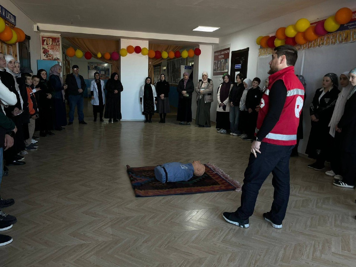 В Тукитинской школе состоялся мастер-класс по оказанию первой помощи 🧑⚕️🧑⚕️Одним из ключевых навыков, который может спасти человеческую жизнь, является умение правильно оказать первую помощь. Именно этой важной теме был посвящен мастер-класс, организованный в Тукитинской школе для педагогов и обучающихся. 😊Провел мастер-класс председатель местного отделения Движения Первых Магомедрасул Далгатов. В формате живого диалога и практического тренинга он рассказал об алгоритме действий в чрезвычайных ситуациях: что делать при потере сознания, как правильно проводить сердечно-легочную реанимацию, оказывать помощь при нарушении проходимости дыхательных путей. ✅Особый интерес у участников вызвала отработка полученных знаний на специальном манекене. Каждый смог попробовать свои силы и под руководством наставника закрепить жизненно важные навыки. ✅«Главная цель такого мероприятия — снять страх и неуверенность. Чтобы в критический момент любой человек, будь то учитель или ученик, не растер