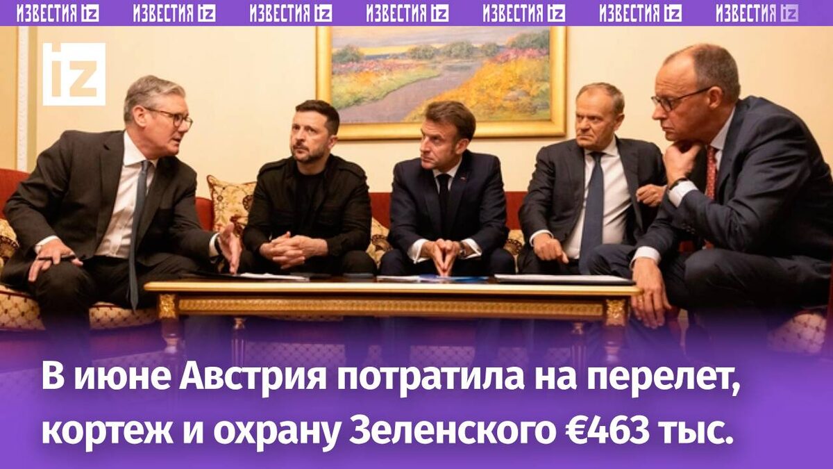 Визит Зеленского в Вену в июне этого года полностью оплатила из своего бюджета Австрия. Цена приема – 463 тысячи евро! Их потратили на перелет, кортеж из 33 автомобилей и охрану из 500 полицейских. Еще оплачены вертолеты сопровождения, дорогое шампанское и "такая мелочь", как "семинар жены президента Украины", на который ушло 20 тысяч евро.