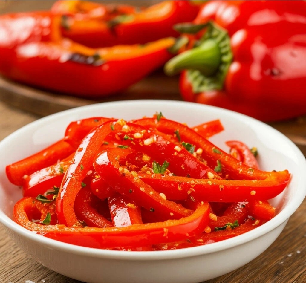 ЗАКУСКА — ОСТРЫЙ МАРИНОВАННЫЙ ЗАПЕЧЕННЫЙ ПЕРЦЕЦ 🌶️ Мяу, любители пикантных ощущений! 😸 Этот перец такой ароматный и острый, что разбудит даже самого сонного кота! Идеальная закуска для тех, кто любит поострее! 🔥✨ ОСТРЫЙ МАРИНОВАННЫЙ ЗАПЕЧЕННЫЙ ПЕРЦЕЦ 🌶️ ИНГРЕДИЕНТЫ: 🧾 ·Сладкий перец (красный, желтый) — 500-600 г 🌶️ ·Растительное масло — 2 ст. л. ·Для маринада: · Вода — 150 мл 💧 · Уксус 9% (или яблочный) — 50 мл · Сахар — 1 ст. л. 🍬 · Соль — 1 ч. л. без горки 🧂 · Чеснок — 3 зубчика (нарезанные пластинами) · Острые специи: хлопья чили (1-2 ч. л.), папика молотая (1 ч. л.), черный перец горошком — 5-6 шт. ВРЕМЯ ПРИГОТОВЛЕНИЯ: ⏰ 40 минут + маринование СЛОЖНОСТЬ:🐾 Для смелых котиков! ПОШАГОВЫЙ РЕЦЕПТ: 👩🍳 1. Запеките перец: Духовку разогрейте до 200°C. Перец хорошо помойте, обсушите, смажьте растительным маслом и выложите на сухой противень. Запекайте 20-25 минут, пока кожица не почернеет и не начнет пузыриться. 2. Очистите перец: Горячий перец переложите в миску и накройте