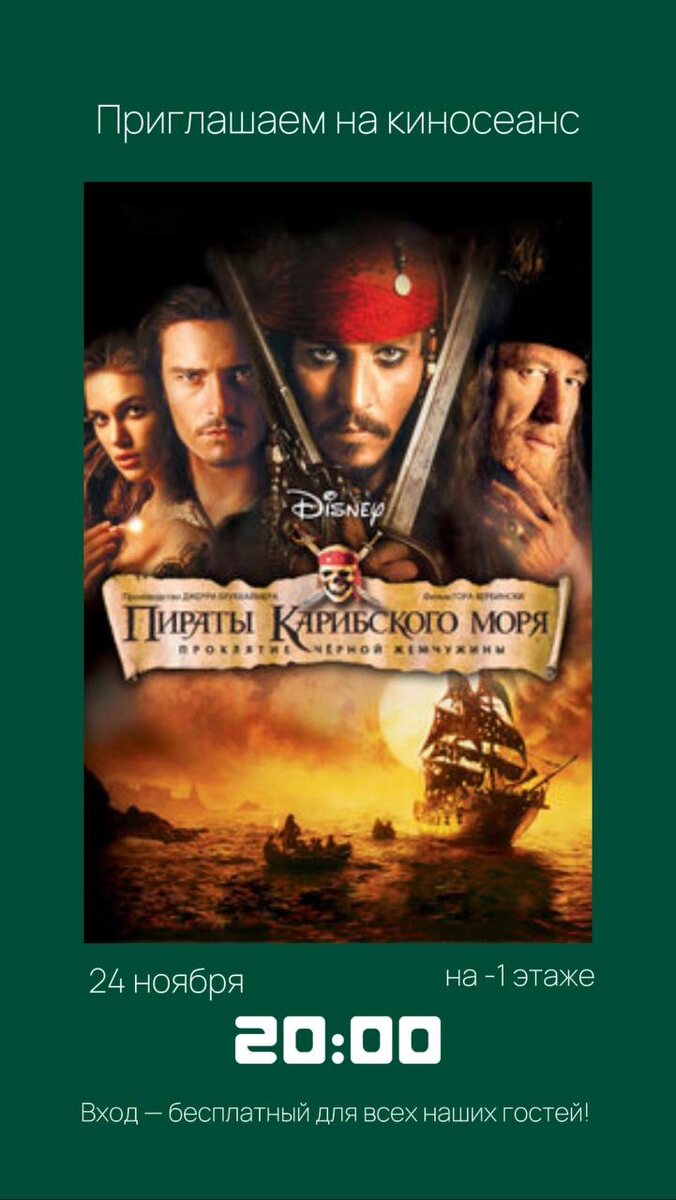 🎬 Кинозона апарт-отеля FREEDOM! ⚫️ -1 этаж 🕗 Начало сеансов в 20:00 🫰 Вход для гостей отеля БЕСПЛАТНО Каждый вечер мы создаем для вас особую атмосферу, где можно отдохнуть и погрузиться в мир захватывающих историй. Приготовьте попкорн и устраивайтесь поудобнее! Расписание на неделю готовим. Сегодня «Пираты Карибского моря». А какой фильм или мультфильм вы бы хотели посмотреть, когда приедете к нам в гости? Поделитесь в комментариях — мы будем рады подготовить для вас самый уютный киновечер! 🍿 #афишаFreedom