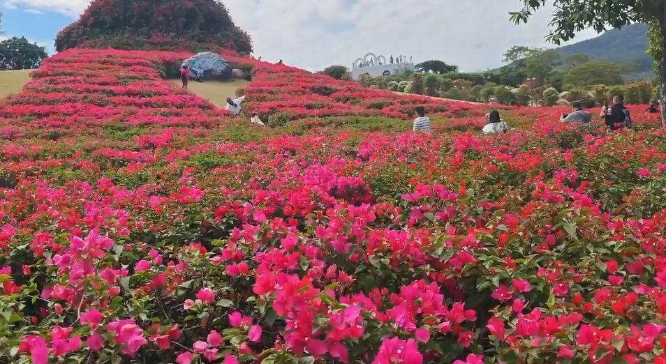 Райский сад. Разноцветные бугенвиллеи на горе Цинсю в Китае сняли с дрона