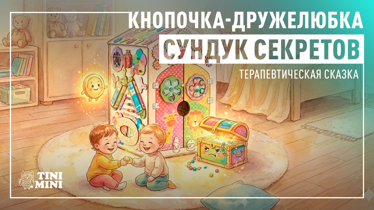 Рекомендуемое чтение: днём, перед общей игрой, с сенсорным взаимодействием с домиком TiniMini В уютном домике TiniMini жила весёлая Кнопочка-Дружелюбка.