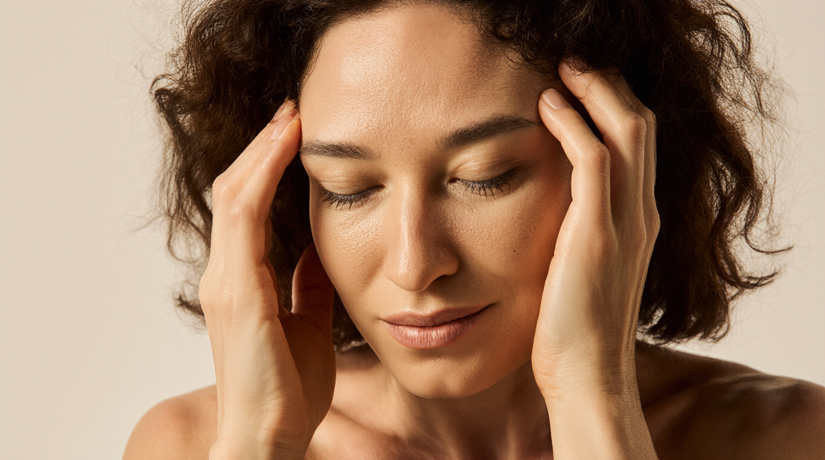 Если посмотреть внимательно, почти каждая женщина, живущая с хроническими головными болями, удерживает лицо — слегка приподнятый подбородок, зажатый угол челюсти, напряжённые скулы, взгляд, который всё ещё пытается контролировать больше, чем возможно. Лицо отражает то, что тело давно уже не может сказать словами.