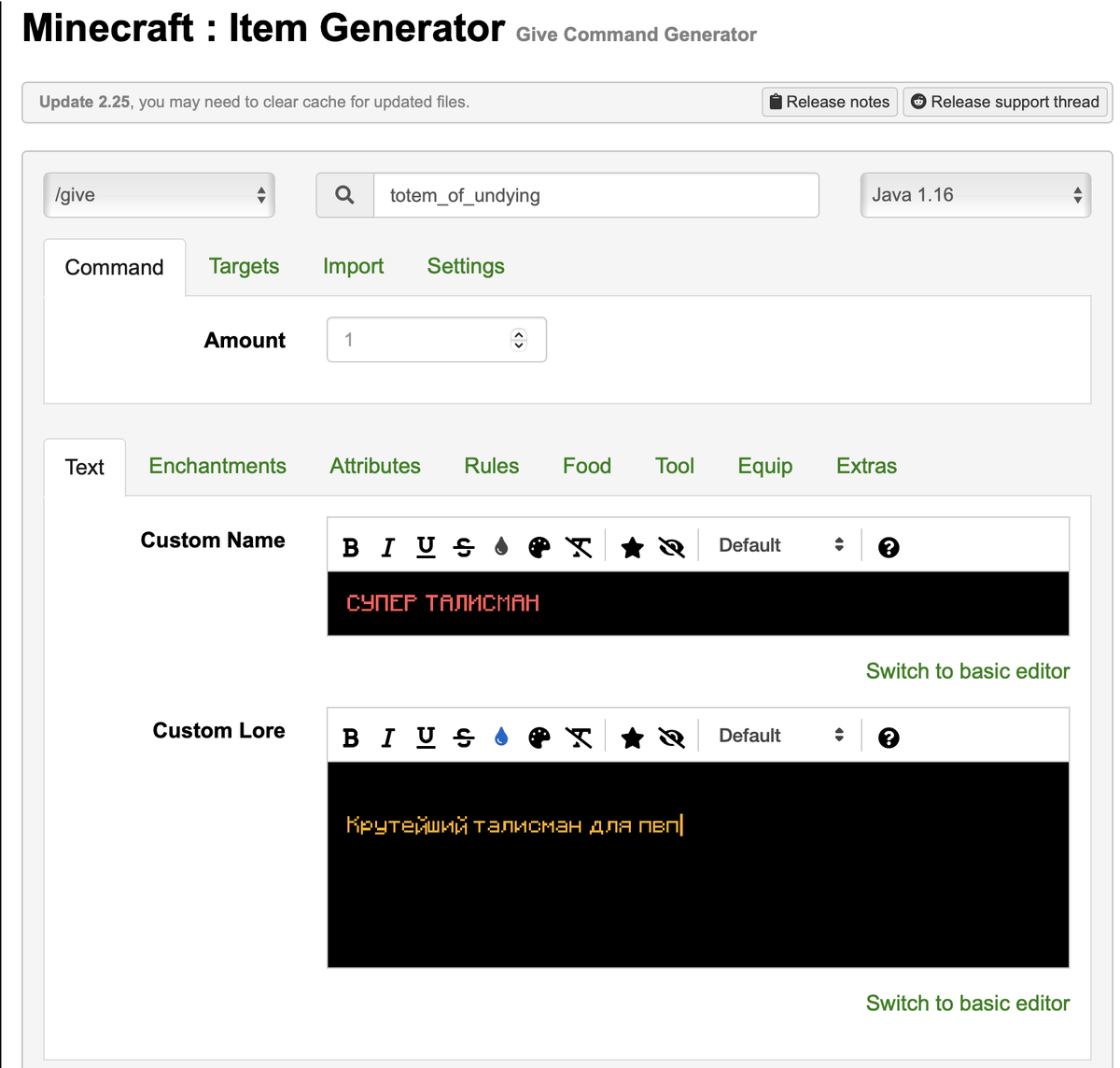 https://www.gamergeeks.net/apps/minecraft/give-command-generator Выбираем: