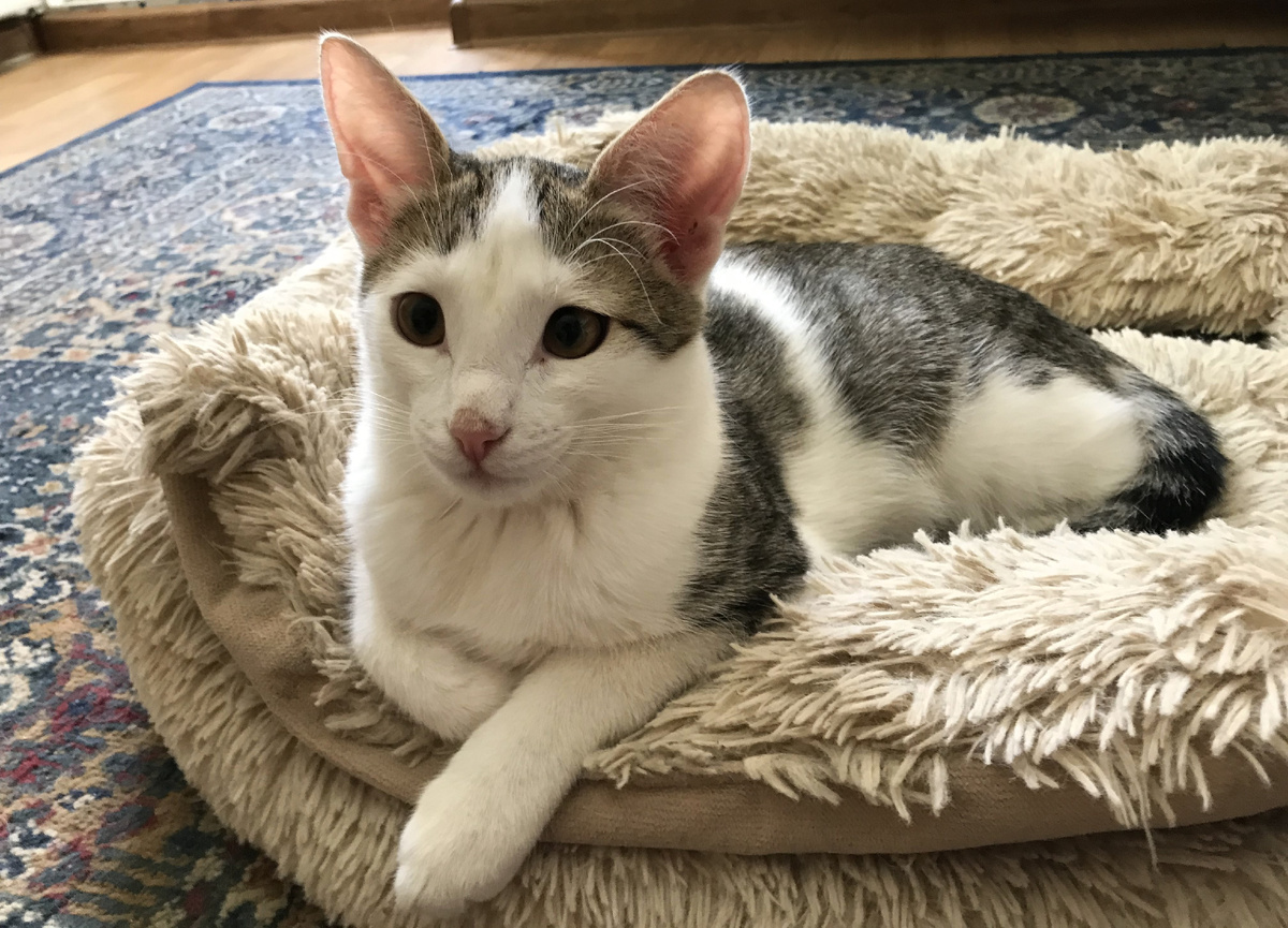 Этим летом в моей стае белых в пятнышко случилось прибавление – появился котёнок Сэм. Напомню, что все мои звери – белые в пятнышко, так уж получается. Хотя я очень люблю чёрных котов и собак, ко мне приходят только белые. И пятна у них не только чёрные, но самые разные. Лето – сезон брошенных котят. К сожалению, это так. И одним жарким утром на автобусной остановке притормозила машина, из неё выкинули картонную коробку, а машина быстро укатила прочь. В коробке оказались крошечные котята, почти слепые и совсем беспомощные. К счастью, прохожие позвонили волонтёрам, а те приехали и малышей забрали. И самым невероятным образом одного из этих крошек предложили усыновить мне. Вы ведь знаете, что важные события нашей жизни всегда происходят невероятным образом? У меня на тот момент жили пёс и кот. Очень взрослые, степенные и ворчливые. Вы с ними знакомы – это Малыш Джой и Фантик. Я опасалась, что старшие не примут малыша, я никогда не воспитывала маленьких котят, у меня была масса сомнений.
