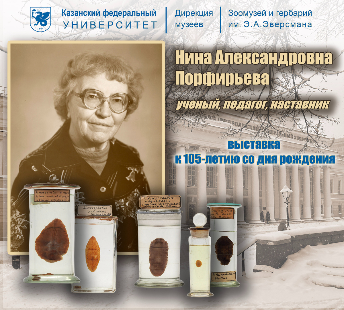 Приглашаем вас посетить онлайн-выставку, подготовленную к 105-летию со дня рождения выдающегося ученого, педагога и наставника - Нины Александровны Порфирьевой. Нина Александровна Порфирьева (1920–2014) много лет входила в педагогическое и научное ядро кафедры зоологии беспозвоночных Казанского университета. Еще совсем недавно она была рядом с нами, а сегодня уже исполняется сто лет со дня ее рождения. Эта дата вызывает потребность перелистать страницы ее биографии и трудовой жизни. https://izi.travel/ru/browse/60951f7a-0e38-4fa0-a885-788771a84592/ru