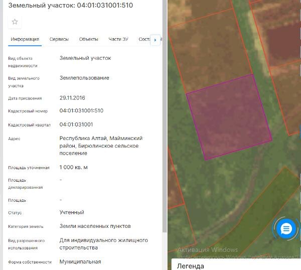 Название: Земельный участок местоположение: Российская Федерация, Республика Алтай, Майминский район, Бирюлинское сельское поселение
