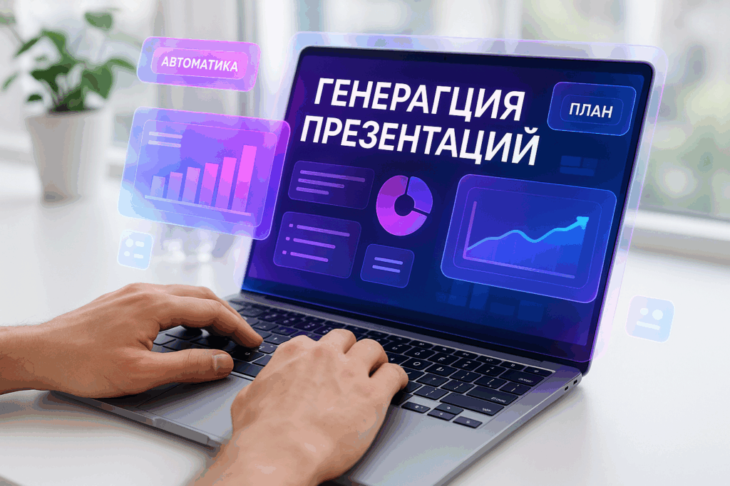 Автоматическая генерация презентации по плану экономит от часа до целого рабочего дня. Подготовьте структурированный план с четкими пунктами и тезисами, загрузите в нейросеть — получите готовую основу за пять минут. Останется только проверить детали и при необходимости заменить пару изображений.