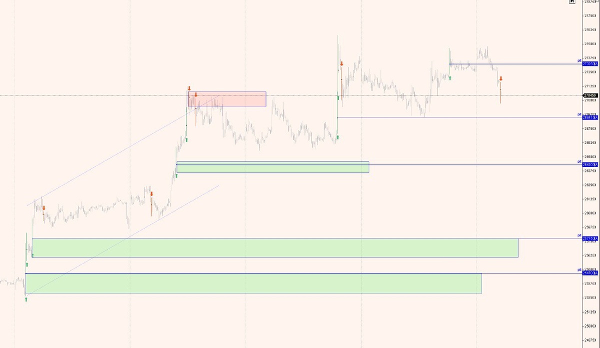 Фьючерс на ММВБ с отмеченными усилиями и уровнями pit
