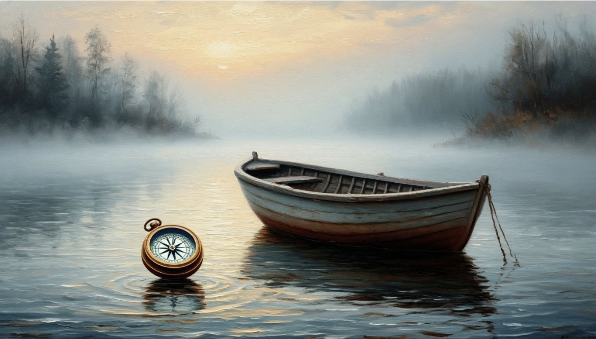 Карта недели - лодка в тумане с компасом из воспоминаний