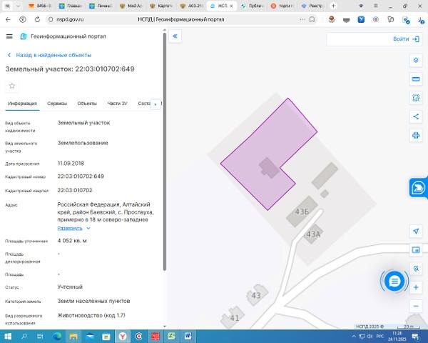 Название: Земельный участок земель населенных пунктов, государственная собственность на которые не разграничена, с разрешенным использованием «Для ведения гражданами животноводства», общей площадью 4052 кв. м. с государственным кадастровым номером 22:03:010702:649. Адрес: Российская Федерация, Алтайский край, район Баевский, с. Прослауха, примерно в 18 м северо-западнее нежилого здания расположенного по ул. Боровая, 43б Канал: Госземля Алтайский край Область: край Алтайский Район: м.р-н Баевский Населенный пункт: с.п. Прослаухинский сельсовет, с Прослауха, ул Боровая, дом 43 Локация: Смотреть на карте ВРИ: Сельскохозяйственное использование Кадастровый номер: 22:03:010702:649 Кадастровая стоимость: - Вид сделки: Аренда Площадь: 4052 м² Начальная цена: - руб. Дата завершения: 25.12.2025 Подробнее: ГИС ТОРГИ #госземля #земляотгосударства #земля #земельныйучасток #земельныеторги #торги #аукцион #арендаземли #аренда #алтайскийкрай