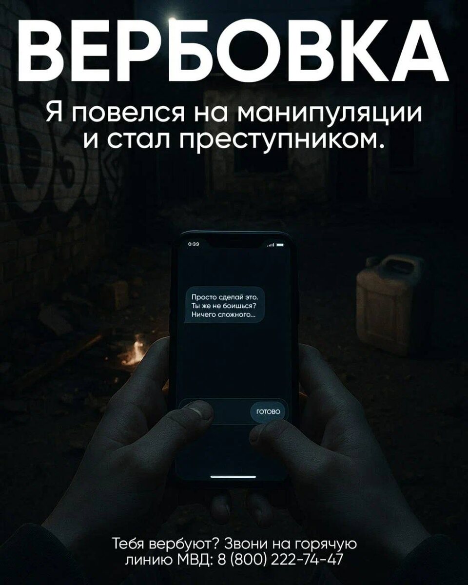 Вербовщики работают по шаблону: сначала дружба и похвала, потом — «проверочные» задания и давление 🤫 Если чувствуешь манипуляцию — прерви общение, сфотографируй переписку и сообщи в полицию или родителям.