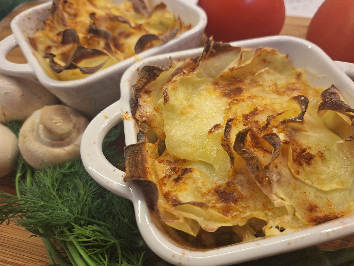 Привет, друзья! Рука так и тянется к пачке с фаршем и сетке с картошкой? Знакомо! Но сегодня отложим в сторону привычные котлеты и предложу кое-что новенькое. Это блюдо — нечто среднее между душевными деревенскими пирогами и современным meal-prep обедом. Готовится легко, а результат — восторг! Почему вам понравится это блюдо: · Всё в одной сковороде/форме: минимум мытья посуды. · Бюджетно и сытно: продукты есть у каждого под рукой. · Вариативно: можно собрать из того, что есть в холодильнике. Картофельная «Розетка» с фаршем и сливочным соусом Это блюдо выглядит очень эффектно, как из ресторана, а готовится проще простого. Тонкие ломтики картофеля, уложенные по кругу, хрустящие снаружи и нежные внутри, а под ними — сочная, ароматная начинка. Ингредиенты (на сковороду диаметром 24-26 см) Основное: · Картофель (ровные, не слишком крупные) — 600-700 г · Фарш (любой на ваш вкус) — 500 г · Лук репчатый — 1 шт. · Чеснок — 2 зубчика · Твёрдый сыр — 80-100 г Для сочной заправки: ·