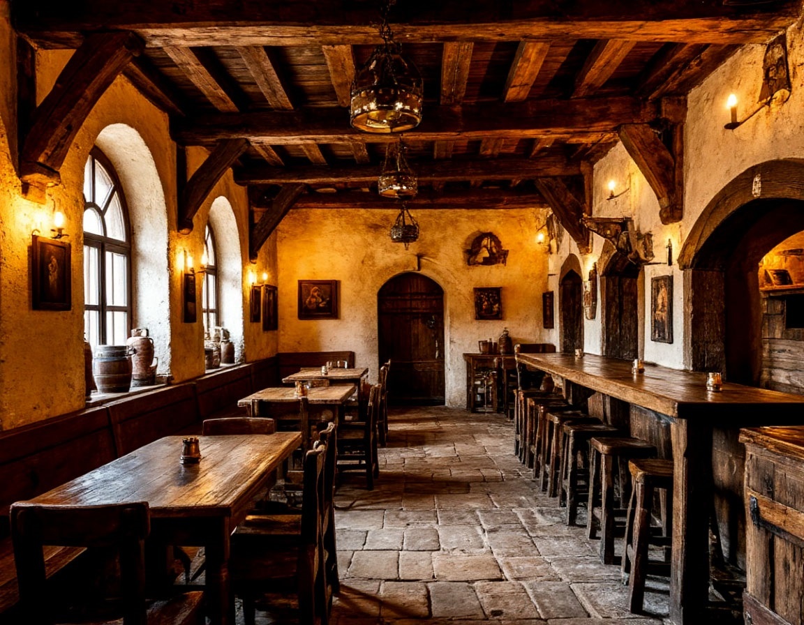 Тем временем народу в общем зале прибавилось. За соседним столиком устроилась в гордом одиночестве молодая женщина с породистым лицом, видимо какая-то местная аристократка. Её слуги скромно сели на лавку у широкого подоконника – не того полета птицы, чтобы госпожа пускала их за свой стол или оплачивала отдельный.