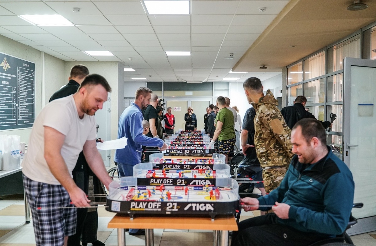 В филиале №8 госпиталя имени Бурденко провели турнир по настольному хоккею для участников специальной военной операции. Военнослужащие показали волю к победе, командный дух и тот самый спортивный характер, который не сломить ни при каких обстоятельствах. Соревнования прошли по всем канонам большого спорта: сначала — квалификационный этап, где каждый доказал свою готовность к борьбе; затем — напряжённые матчи плей‑офф, где решалась судьба призов. «Такие мероприятия очень важны для наших ребят. Они позволяют отвлечься от существующих проблем, даже ненадолго вернуться в детство. Улыбки на лице и весёлый азарт в глазах говорят сами за себя. Задача нашего Фонда поддерживать ребят в этот непростой период лечения и реабилитации», — отметила социальный координатор регионального отделения государственного фонда «Защитники Отечества» в Химках Евгения Евсеева. Организаторами турнира стали: Государственный фонд «Защитники Отечества» и Российская федерация настольного хоккея. Награды победител