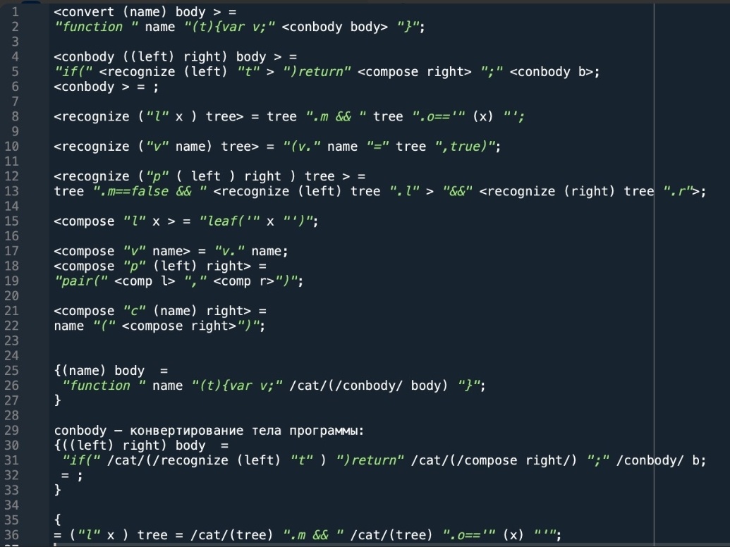 В левой части каждого такого равенства – вызов определяемой функции-понятия с аргументом-выражением. В правой части выражение, определяющее значение этой функции.Возможно добавление дополнительных равенств-условий, при которых выполнено основное правило-равенство.