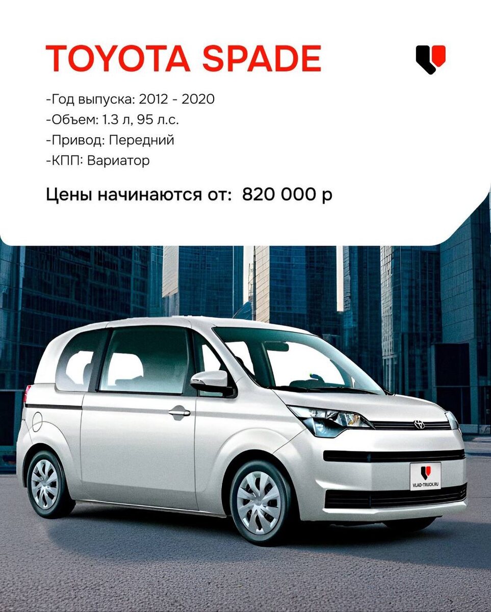 Toyota Spade -Год выпуска: 2012 - 2020 -Объем: 1.3 л, 95 л.с. -Привод: Передний -КПП: Вариатор Цены начинаются от: 820 000р Toyota Tank -Год выпуска: 2016 - 2020 -Объем: 1.0 л, 69 л.с. -Привод: Передний -КПП: Вариатор Цены начинаются от: 650 000р Toyota Vitz -Год выпуска: 2017 - 2020 -Объем: 1.0 л, 69 л.с. -Привод: Передний -КПП: Вариатор Цены начинаются от: 860 000р Toyota Wish -Год выпуска: 2012 - 2017 -Объем: 1.8 л, 130 л.с. -Привод: Полный -КПП: Вариатор Цены начинаются от: 1 000 000р Toyota Yaris -Год выпуска: 2021 - 2025 -Объем: 1.0 л, 69 л.с. -Привод: Передний -КПП: Вариатор Цены начинаются от: 700 000р Toyota Yaris Cross -Год выпуска: 2020 - 2023 -Объем: 1.5 л, 120 л.с. -Привод: Полный -КПП: Вариатор Цены начинаются от: 1 750 000р Toyota Noah -Год выпуска: 2017 - 2020 -Объем: 2.0 л, 152 л.с. -Привод: Передний -КПП: Вариатор Цены начинаются от: 2 200 000р Mazda Atenza -Год выпуска: 2015 - 2019 -Объем: 2.0 л, 156 л.с. -Привод: Передний -КПП: Автомат Цены начинаются