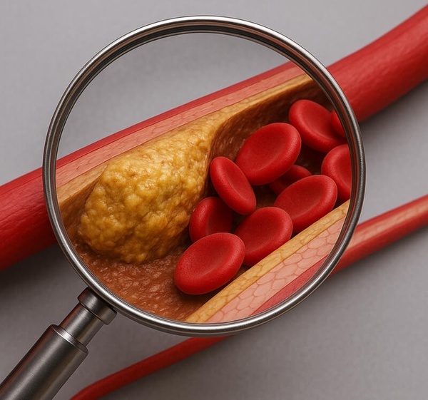 Холестерин – это жироподобное вещество, которое относится к классу липидов. Он был открыт при изучении состава желчных камней, и его название сочетает два греческих слова - «chole» (желчь) и «stereo» (твердый). В организм 30% холестерина поступает с пищевыми продуктами (фаст-фуд, колбасы, полуфабрикаты, яйца, субпродукты, жирное мясо, молоко), а 70% синтезируется в печени, тонком кишечнике и коже. При избыточном поступлении синтез холестерина в организме замедляется. С возрастом такая регуляция нарушается и избыточное поступление сочетается с активным синтезом. Холестерин необходим организму: Снижение холестерина негативно сказывается на организме: повышается риск гипертиреоза, нарушается работа надпочечников, снижаются интеллектуальные способности, отмечается склонность к суициду, агрессивному поведению, депрессии (особенно у пожилых). Употребление бесхолестериновых продуктов снижает сексуальную активность и приводит к нарушению менструального цикла. Излишки холестерина откладываютс