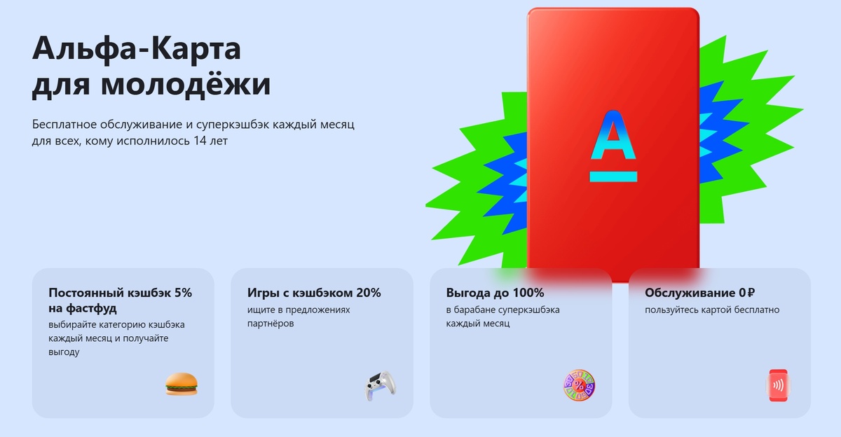 «Альфа-Карта для молодёжи» — это специальная дебетовая карта Альфа-Банка, рассчитанная на молодую аудиторию (подростков и студентов).