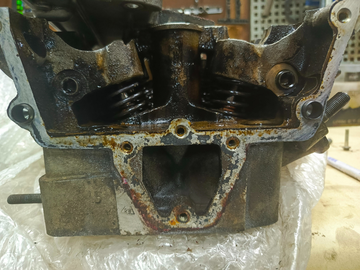 Клапана притерты, моем ГБЦ очень тщательно. Промываем под давлением маслоканалы, и седла клапанов от остаток притирочной пасты. Советуем промывать бензином через промывочный пистолет под давлением.