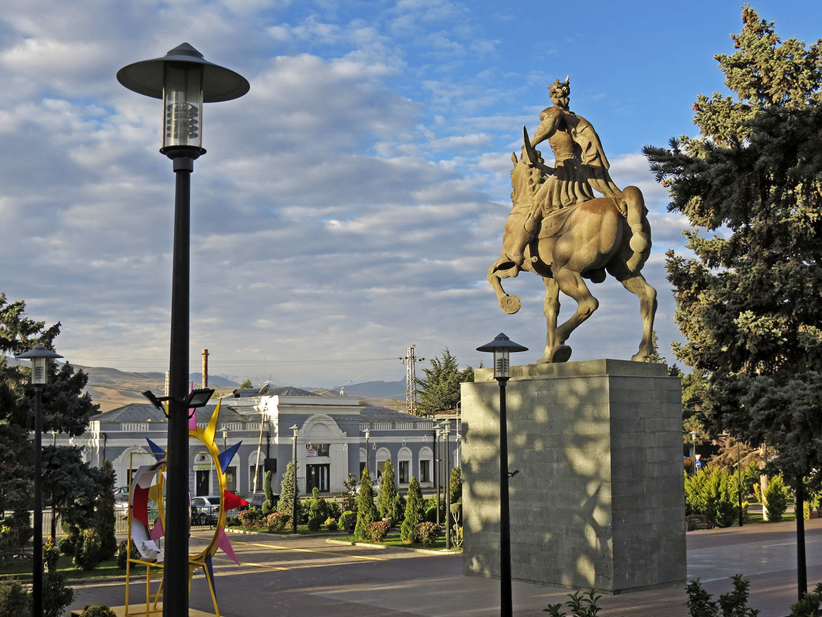 У вокзала в грузинском городке Каспи, в гарцующем с 1972 года эпическом витязе сразу и не разглядишь героя не столь давних времён - Георгия Саакадзе.