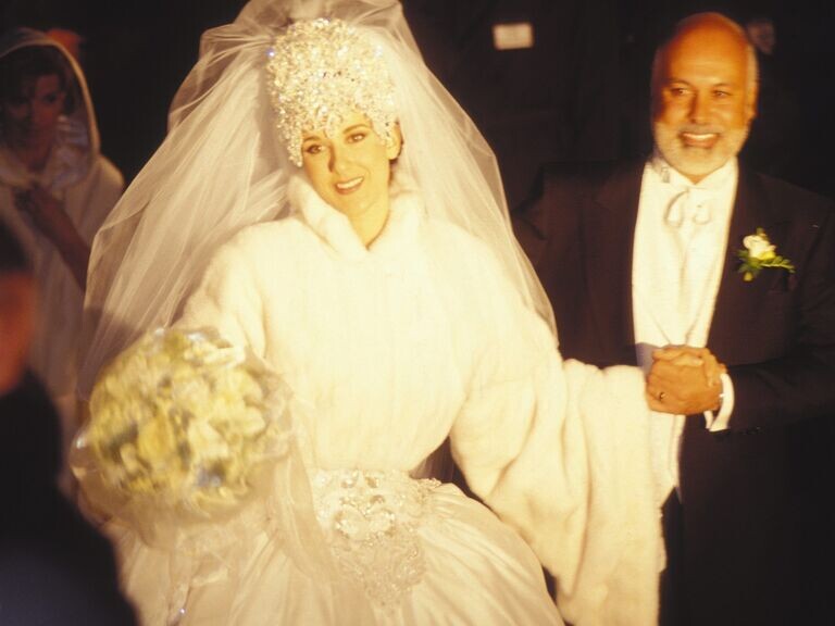 Роскошная, величественная и поистине иконическая — именно такой стала свадьба Рене Анджелила и Селин Дион. Эта церемония по праву считается одной из самых запоминающихся звёздных свадеб всех времён. Пара поженилась 17 декабря 1994 года в Базилике Нотр-Дам в Монреале, Канада. Свадьбу транслировали по канадскому телевидению, поэтому поклонники смогли увидеть часть эксклюзивного торжества. После венчания молодожёны отпраздновали событие на закрытом приёме. По редким фотографиям известно, что свадебный торт был огромной пирамидой из профитролей — французских заварных пирожных с кремом. Для такого важного дня певице было необходимо платье, достойное величественного собора. Создавать его она поручила дуэту дизайнеров Mirella и Steve Gentile. Эту модель часто сравнивали с платьем принцессы Дианы — не случайно: само платье Селин стало символом свадебной моды. В интервью в день свадьбы Селин рассказала, почему выбрала именно такой стиль: «Я хотела платье девочки. Я хотела платье принцессы, о