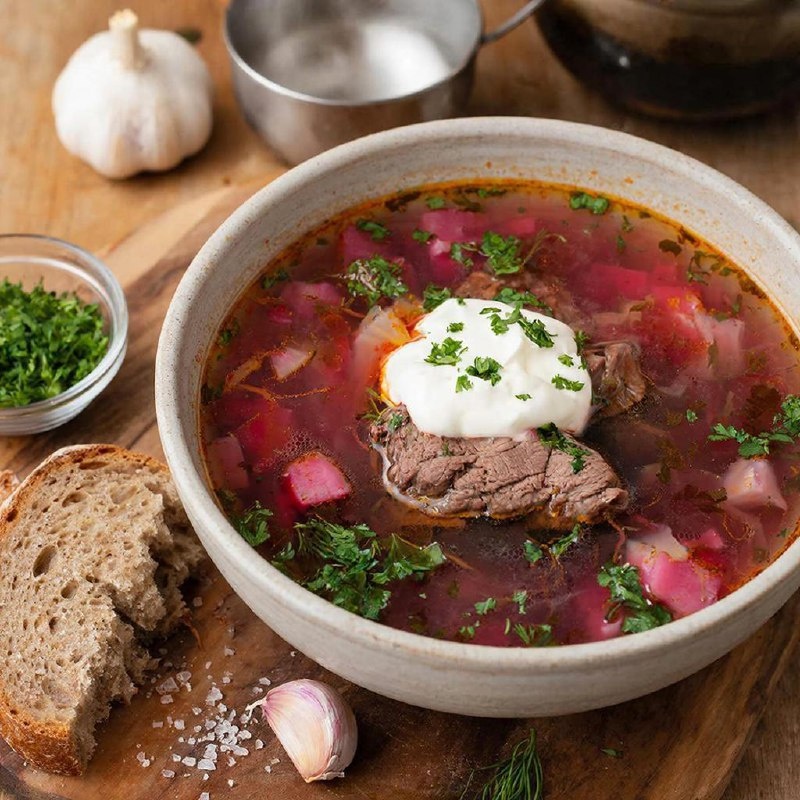 🥄 КЛАССИЧЕСКИЙ БОРЩ С ГОВЯДИНОЙ ОТ «ВКУСНО И БЫСТРО» Сытный вкус детства — всё по шагам! ⏱️ 1,5 ч 🍽 5 порций 🔥 ~190 ккал 💪 Средне 🧾 Ингредиенты: Говядина на кости — 300 г 🥩 Свёкла, капуста, морковь, картофель, лук Томатная паста — 2 ст. л., чеснок, сало, зелень 👩🍳 Пошаговый рецепт: 1️⃣ Варим говядину 1 ч, добавляем лаврушку 2️⃣ Свёклу натираем, пассеруем с луком и морковью 3️⃣ Зажарку + картофель + капусту — в бульон, паста, специи, 15 мин 4️⃣ Чеснок, сало и зелень давим, отправляем в борщ 5️⃣ Дать настояться 10 мин, подать со сметаной 🩺 Польза: Свёкла — железо, капуста — клетчатка, мясо — белок 💡 Лайфхак: сметана = идеальная мягкость! ❤️ Подпишись: 👉 https://max.ru/id662337195274_biz 📲 #обед #борщ #суп #говядина #домашняяеда #классика #семья #MAX #пошагово