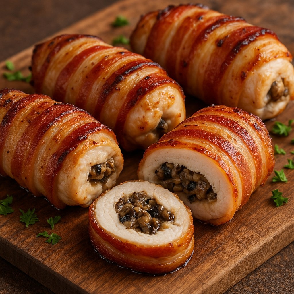 Если вы хотите порадовать своих близких вкусным и эффектным блюдом, куриная грудка с грибами, завернутая в бекон — отличный выбор. Это сочетание нежного мяса, ароматных грибов и хрустящего бекона создаст настоящий кулинарный шедевр на вашем столе. Давайте разберемся, как его приготовить! Ингредиенты: • 2 куриные грудки